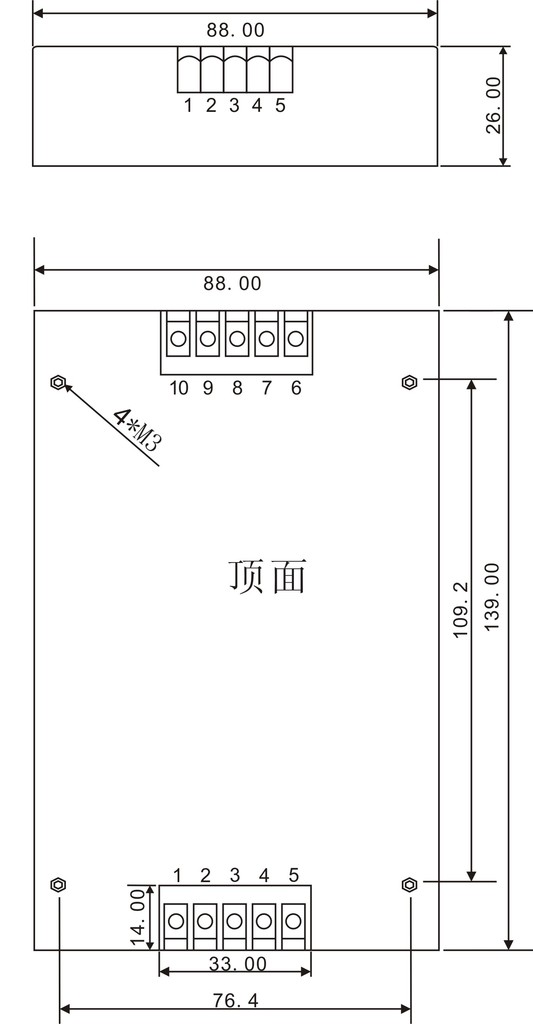 外形圖與引腳定義:139×88×27mm