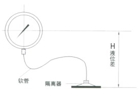 尤其是對于帶軟連接管的隔膜表,由于隔膜受壓部與通用型壓力表安裝位置不在同一水平面上,會產生液位差和影響量△P。在精確測量時更就注意。 |