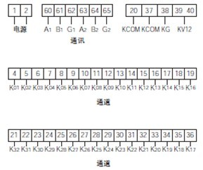 無源干接點:Ki(i=1-32)與公共端KV12為各通道接入端,同時KCOM和KG短接。