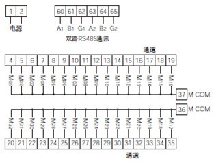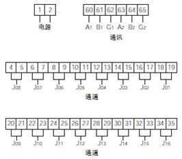 無源干接點:Pi(i=1-32)與公共端PV12為各通道接入端,同時PCOM和PG短接。