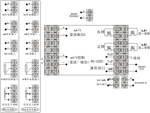 豎式儀表向左逆時(shí)針旋轉(zhuǎn)90℃。)不同功能在同一端子的,只能選其中一種功能。