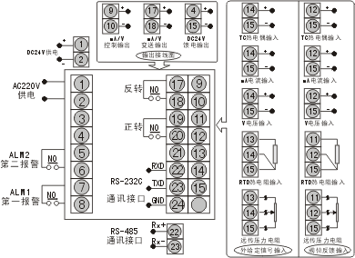 保護(hù)方式:·輸入回路斷線報(bào)警(熱電偶或電阻輸入時(shí)),繼電器輸出狀態(tài)LED指示