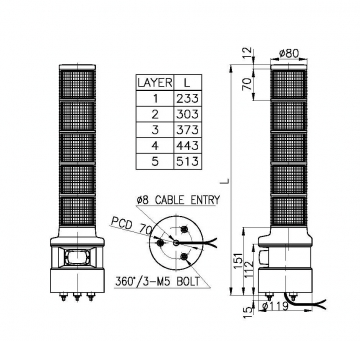 帶高音量喇叭的 Ø80 LED 多層式警示燈