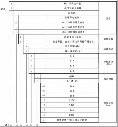 1、特制的99.99%Si02透明石英管,其變形點1077℃,軟化點1730℃,抗壓強度1170Kg/cm3,膨脹系統數5.5*10的負7次方,經特殊工藝處理后具有耐高溫,高壓和優良的機械特性。 2、工作壓力:1.6、2.5、4.0、6.3MPa 3、工作溫度:-50~+520℃ 4、測量范圍L:測量范圍按中心中期則制定:300、500、800、1100、1400、1700、2000mm鍋爐水位計:300、400、440 mm,特殊規格請注明尺寸。 5、伴熱蒸汽夾套:工作壓力1.0MPa, 接管尺寸G1/2內螺紋。 6、法蘭連接尺寸:采用化工部新實施的HG20592-2063597法蘭標準 7、用戶采用其他法蘭標準,請在訂貨時注明。 8、鋼球自動封閉壓力:大于0.2MPa 9、重量:15-30Kg 10 、UNS-A~B顯示高度與測量范圍關系表(顯示高度即標尺高度) ![]()
