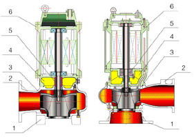 潛水污水泵采用獨特結構和新型機械密封,能有效地輸送含有固體物和長纖維。葉輪與傳統葉輪相比,潛水污水泵葉輪采用單流道或雙流道形式,它類似于一截面大小相同的彎管,具有非常好的過流性,配以合理的蝸室,使得該泵具有效率高、葉輪經動靜平衡試驗,使泵在運行中無振動。