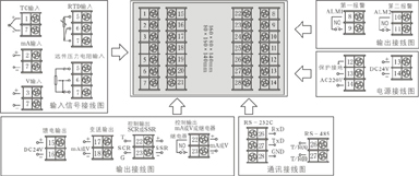 輸入端口具備萬能信號輸入功能,只需通過儀表菜單的簡單選定,即可實現不同類型輸入信號(各種熱電偶、熱電阻、標準電壓/標準電流信號)之間的輕松切換,提高了儀表的通用性和可靠性。