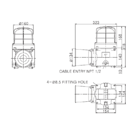 材料 : 燈外罩-防爆型鋼化玻璃 , 底座-DIECAST AL, 燈內罩-PC, 保護網, 喇叭外殼-SUS316L , 反射鏡-耐熱性ABS |