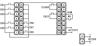 接點式閉路報警,DC24V饋電輸出,DC24V供電,發(fā)光管式指示。