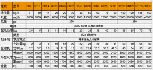 升溫、降溫式管道除濕機參數表: