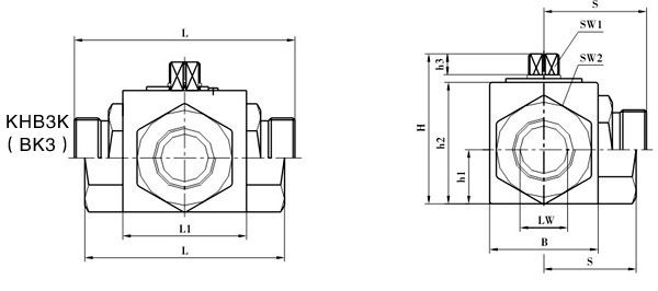 ① 系列代號:KHB3K(BK3)系列二位三通球閥