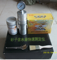 取平行測試的兩次壓力值的算術平均值,將此值代入如下方程即得所測砂樣的濕基含水率,若要求精度不高,也可直接由壓力值查表而得砂樣的濕基含水率。
