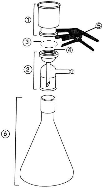 ![]() 1 濾杯 2濾頭 3濾膜 5夾子 6三角瓶