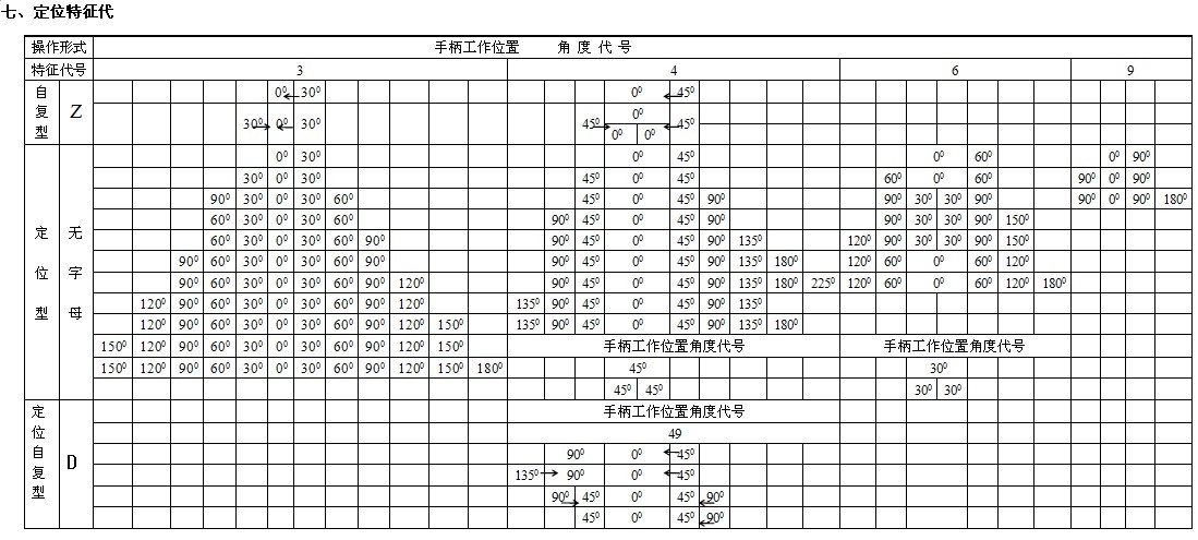 注(2):“3”(30°)、“4”(45°)、“6”(60°)、“9”(90°)、“49”(45°-90°)其中的角度數為轉軸每轉一次的角度,多轉不限。(45°-90°)表示即可一次轉45°,又可轉一次為90°。