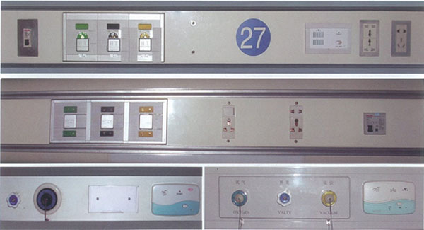 o 工作原理:由氧氣匯流排或液氧罐供給的氣源,經過過濾、減壓、調節,通過輸氣管道輸送到各病房床頭的氧氣終端內(或綜合設備罩),終端內裝有插拔式自封快速接頭(即終端連接頭),快速接頭的出口接濕化瓶。使用時,要需將濕化瓶插入對應的插孔口,氧氣就源源不斷地送給病人使用。