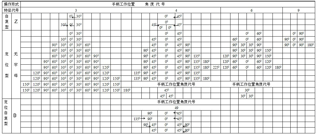 4 按操作方式與操動器位置組合如下表所示