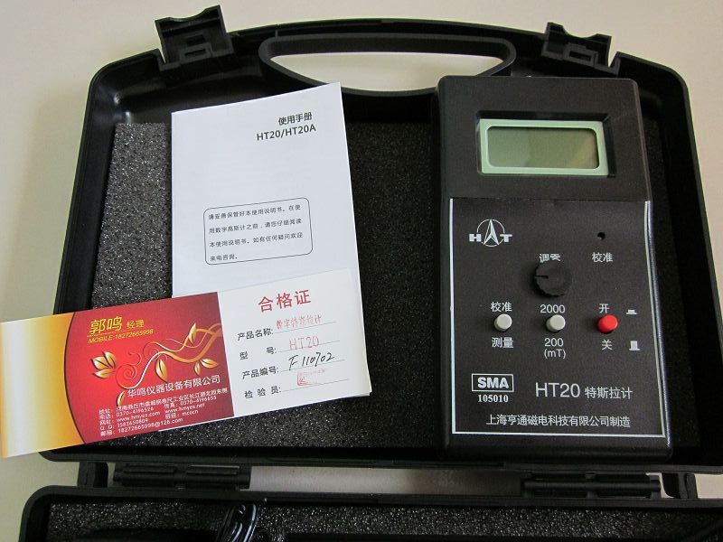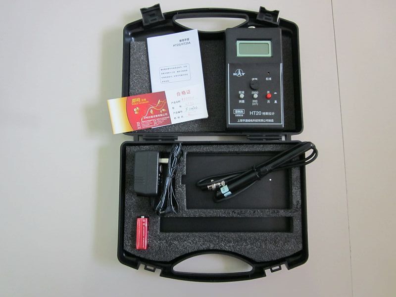 HT20型手持式數字高斯計,用于測量永磁材料表面磁場、直流電機、揚聲器、磁選機、永磁除鐵器的工作磁場以及泄漏磁場,零部件機加工后的退磁剩磁場。該儀器可以隨身攜帶,量程范圍寬,操作方便,液晶顯示清晰。