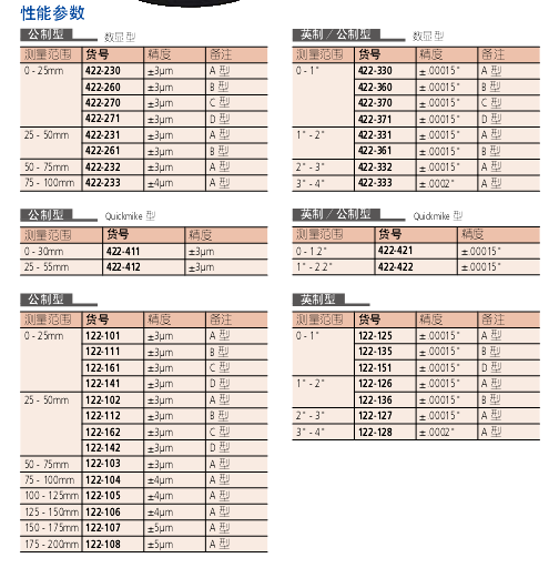 平行度: 測量范圍小于75mm 型為3μm