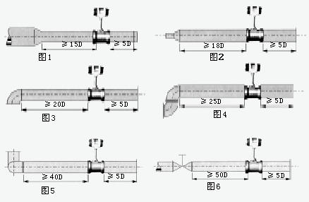 為了確保儀表正常、準確運行,傳感器安裝點的上下游必須有一定的直管道,以調整流場,如圖所示。
