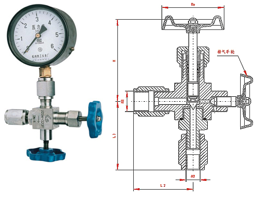 J29H/W壓力表針型閥主要外型及連接尺寸