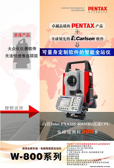 賓得W-800系列全站儀基于Win CE 平臺,采用的是測繪軟件公司美國Carslon公司推出的SurvCE2.0。無論對于龐大的項(xiàng)目還是小項(xiàng)目,SurvCE2.0以強(qiáng)悍、直觀的數(shù)據(jù)采集、管理、編輯及圖形顯示功能另眾多測量軟件暗淡無光;