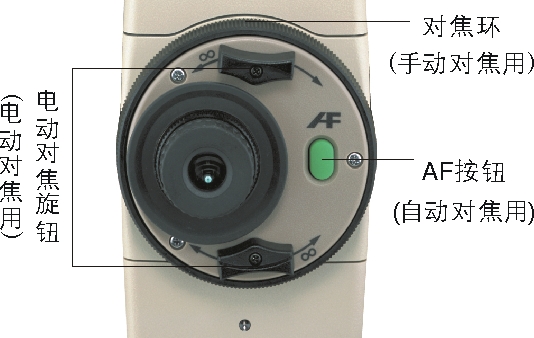 有三重調(diào)焦方式,除了自動(dòng)調(diào)焦、手動(dòng)調(diào)焦以外,還有電動(dòng)調(diào)焦方式可以從近距離到遠(yuǎn)距離緩慢、高速旋轉(zhuǎn),進(jìn)行的對焦。只要按下AF按鈕,立即就能對目標(biāo)物調(diào)焦。(電動(dòng)對焦向右旋轉(zhuǎn)是近距離,向左旋轉(zhuǎn)是 遠(yuǎn)距離)