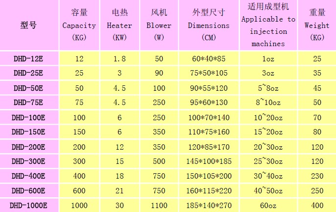 干燥機的規(guī)格: