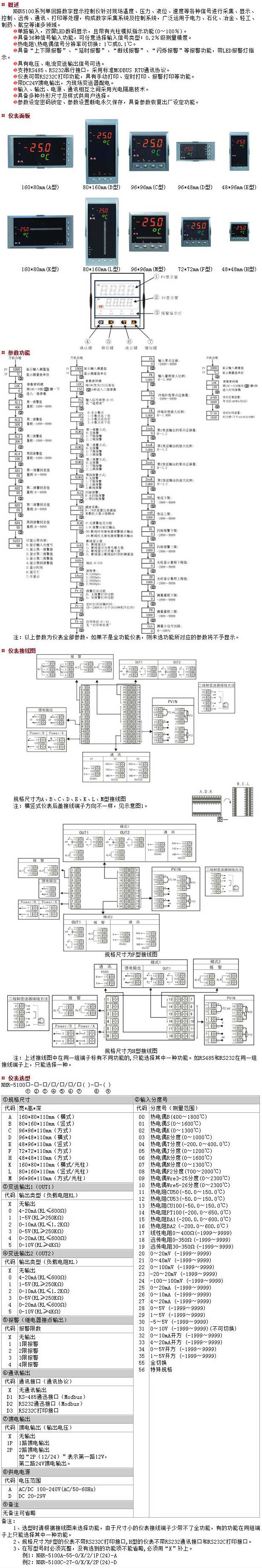 NHR-5100系列單回路數字顯示控制儀針對現場溫度、壓力、液位、速度等各種信號進行采集、顯示、控制、遠傳、通訊、打印等處理,溫度控制儀/壓力顯示儀