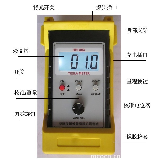 HM88A型手持式數字特斯拉計,用于測量永磁材料表面磁場、直流電機、揚聲器、磁選機、永磁除鐵器的工作磁場以及泄漏磁場,零部件機加工后的退磁剩磁場。該儀器可以隨身攜帶,量程范圍寬,操作方便,液晶顯示清晰。