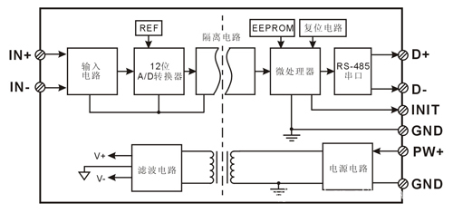 ●模擬信號采集,隔離轉換RS-485/232輸出