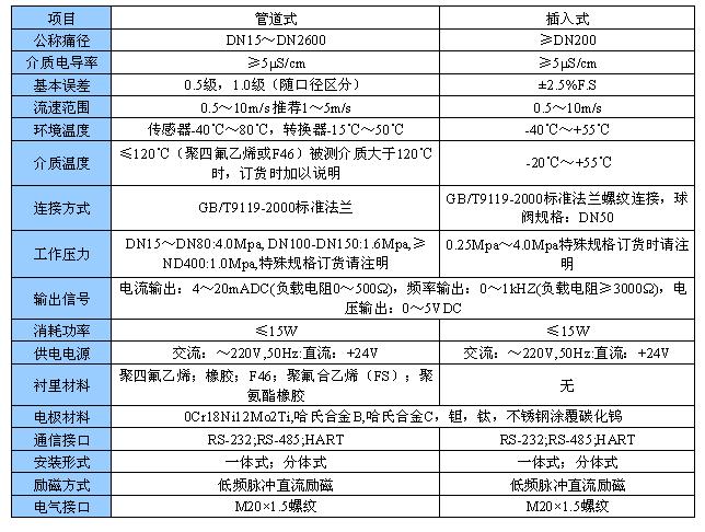 二、電磁流量計技術參數