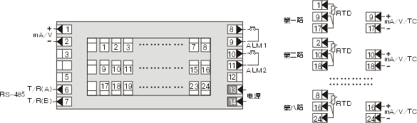 各輸入端口均具備信號和單通道輸入功能,且各路可同時輸入不同類型的信號,輸入信號全切換時只需通過儀表菜單的簡單選定,即可實現不同類型輸入信號(各種熱電偶、熱電阻、標準電壓 / 標準電流信號)之間的輕松切換,提高了儀表的通用性和可靠性。 控制輸出有二種:各路統一報警輸出/變送輸出;各路分別報警輸出/變送輸出。統一報警型又分為:報警記憶型和報警無記憶型。輸出回路均采用光電隔離,具有良好的抗干擾能力。 具有高亮度LED數碼顯示和全中文大屏幕LCD液晶顯示兩種。可帶有串行通訊接口。整機采用卡入式結構,使安裝十分簡便。 |