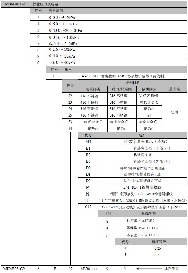 MDM3051系列智能壓力/差壓/液位變送器具有設計原理新穎、品種規格齊全、安裝使用簡便、安全防爆等特點。尤以精度高、體積小、重量輕、調整方便、長期穩定性好、單向過載保護能力強、適用于惡劣場所使用而著稱。因此在外市場上享有很高的聲譽。MDM3051系列0.1級電容式智能變送器包括壓力、差壓、壓力、遠傳、液位等多個品種、并配備相應的選件產品,可廣泛應用于電力、冶金、石化、制藥、儀器加工等行業,與我國推行的“IEC”標準要求相符。