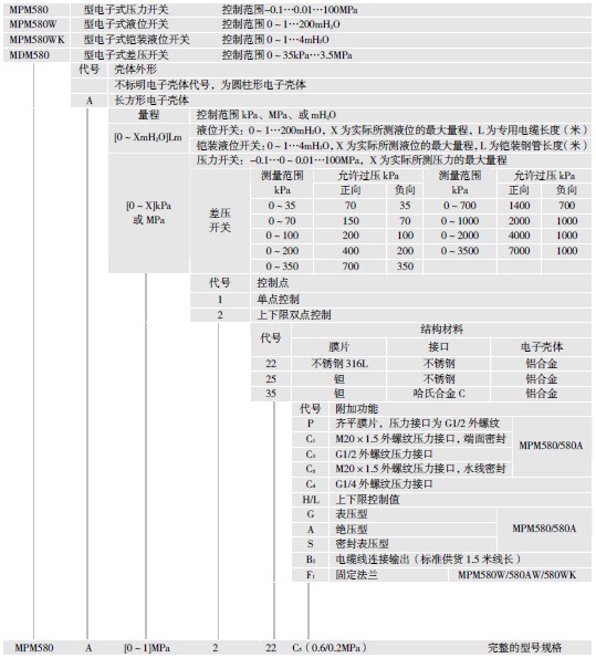 MPM/MDM580系列電子式壓力/液位/差壓開關根據產品所設定的控制接點值提供多兩個開關信號,實現對工業現場壓力、液位及差壓的開關量控制。廣泛應用于化工、機械、水文、電力等系統的壓力控制和自動化過程控制系統。