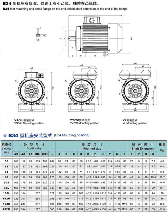 | YC | 90S-4 | 0.55 | 3/4 | 1400 | 5.49 | 66 | 0.69 | 29 | 2.5 | 1.8 |