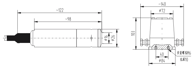 •分體式結構,投入(插入)液體中的傳感器部分為全密封不銹鋼結構,電子線路殼體為鑄鋁結構件,安裝于方便接線的地方,便于調校和接線;