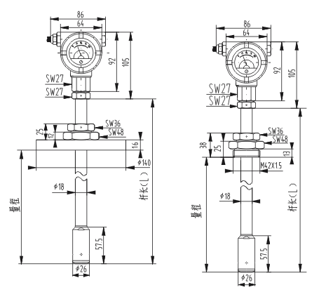 •MPM416WK型不銹鋼管鎧裝防護,標準法蘭安裝,可現場顯示,現場調校;