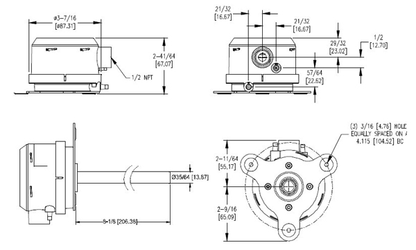 0.1″0.25″0.5″w.c.(25,50,100Pa)