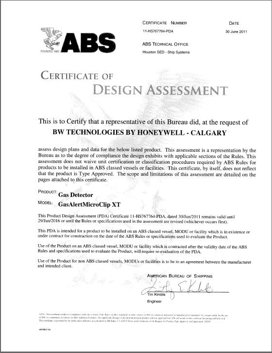 MC2-4氣體檢測儀——ABS美國船級社認證: