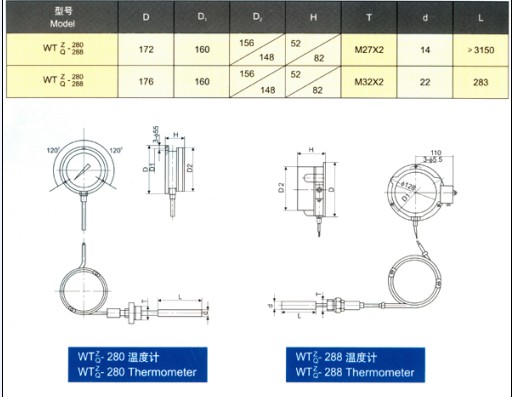 電接點溫度計 型號;HC-WTQ-288