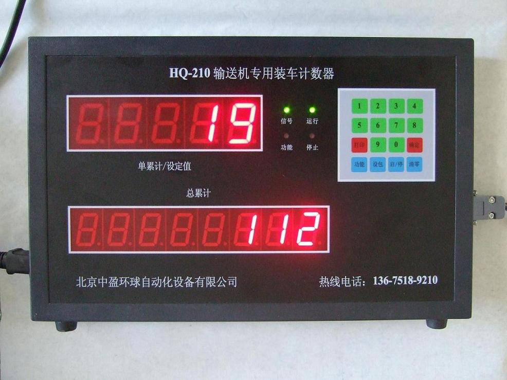 3、雙窗口顯示:同時顯示單次裝車數和總累計數;計數范圍分別是:0-99999,0-99999999。