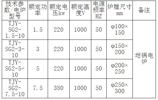 坩堝電爐/箱式電爐型號:TJY-SG2-1.5-10 用途概述: 箱式電爐、坩堝電爐用于各工礦企業、大專院校、科研單位作元素分析、小型鋼