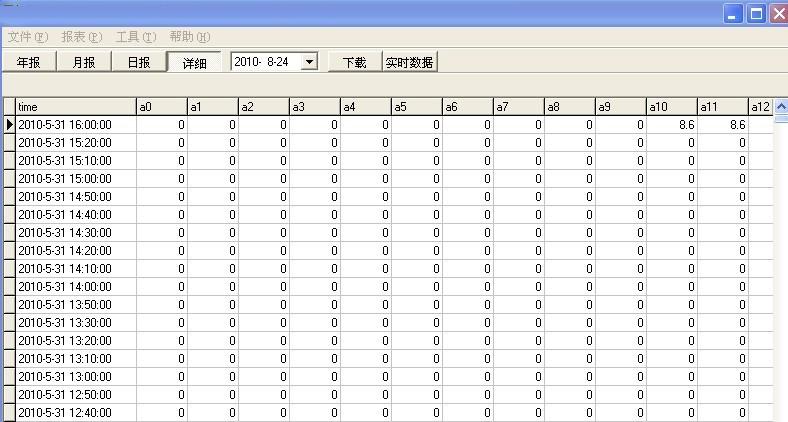 12、日報:記錄當天每小時的累積降雨量;月報記錄當月每天的累積降雨量;年報記錄當年每月的累積降雨量。