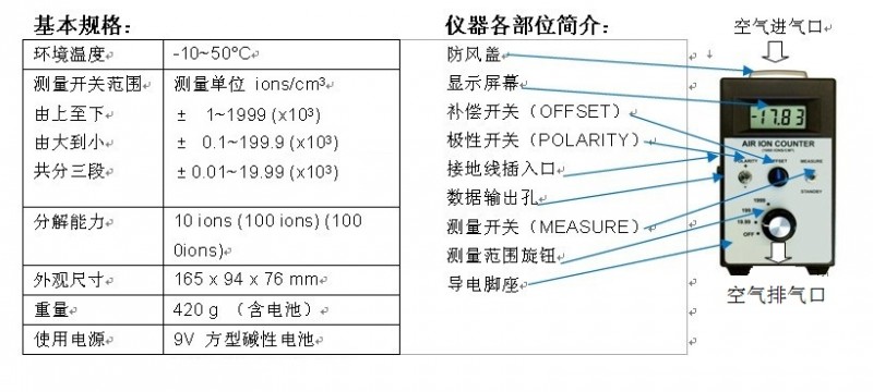 AIC-1000負(fù)氧離子檢測(cè)儀,采用“平行板”檢測(cè)方法。通過(guò)帶電的平行化電板進(jìn)行測(cè)量空氣中的離子(氣體)濃度。