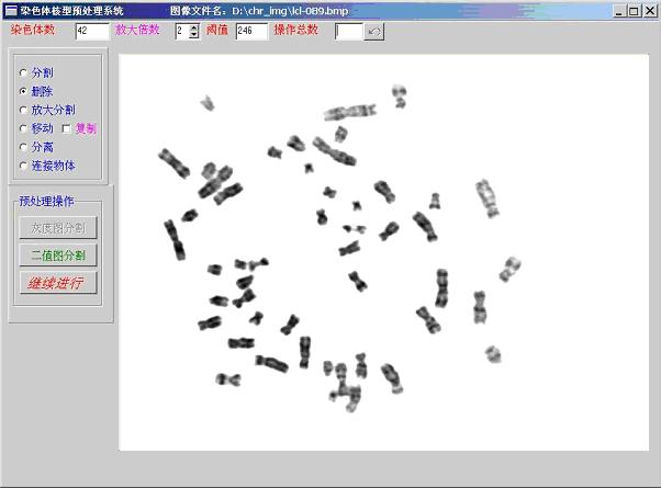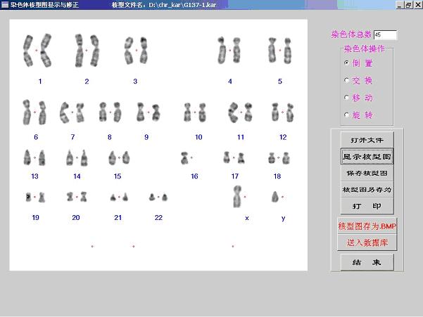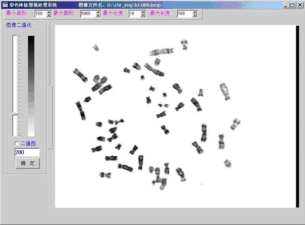 本系統針對人的外周淋巴血細胞染色體的G帶核型分析,研制了染色體核型自動分析系統。該系統可以對G顯帶染色體細胞,進行分離和分割,然后自動進行識別排隊,從而實現了G顯帶染色體核型分析。同傳統的人工核型分析相比,該系統大大減輕人工的繁鎖勞動,可為臨床遺傳疾病的查檢和對胎兒進行產前染色體疾病的診斷提供了一個有效的工具。