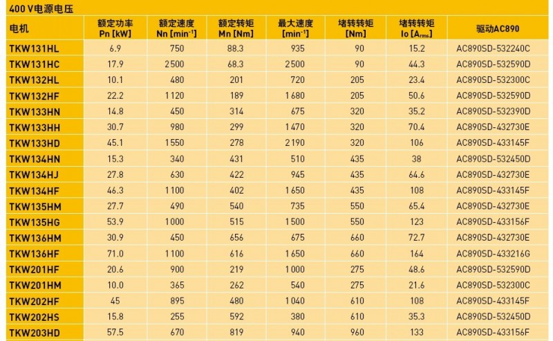 PARKER直驅力矩電機TK系列技術參數: