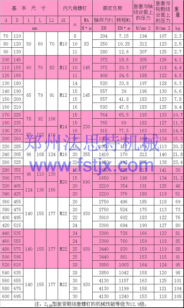 Z12B脹緊連接套圖紙及參數(shù)