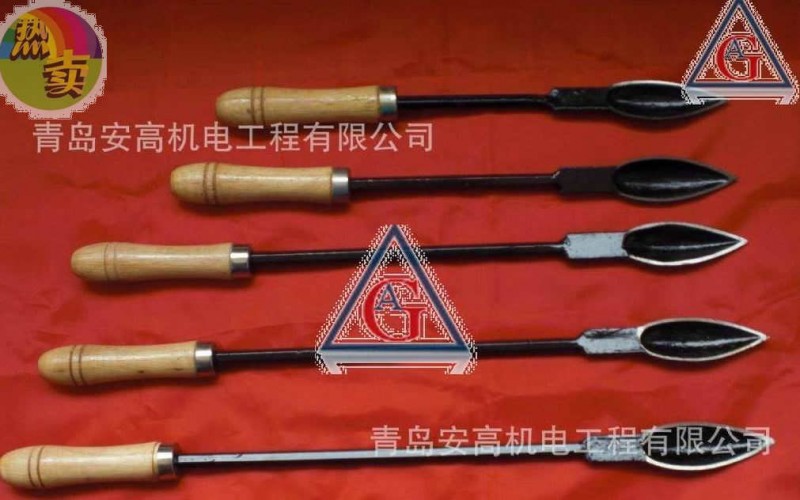 半圓刮刀用T12A工具鋼制造,后端裝有木柄,刀體部分淬硬到58-HRC62左右,刃口經過研磨,磨損后可進行復磨。
