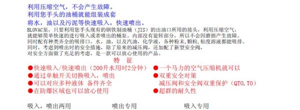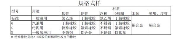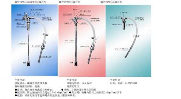 連接軟管直徑有Φ25mm和Φ32mm兩種型號,本液體專用型特別適用于高粘度的液體具有強大的吸力。