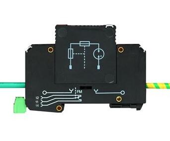 電壓互感器PT二次接地保護器(過電壓保護插件) 電壓互感器-F-MS25-PVT/FM二次接地保護器(過電壓保護插件)特點是:主元件采用密閉式防雷技術;獨特脫扣保護功能,大沖擊下有效脫扣,保護主元件;元件損壞時可靠脫扣,呈現開路狀態,杜兩點接地;動作值離散性很小,固定在1400V±20%;放電快速,不超過20ns,緣水平恢復到擊穿前90%小于500ms;額定zui大放電電流20kA,殘壓值低;防手觸拔插式設計,無法觸碰到金屬帶電部分,底座固定接線,更換只需拔插操作,元件體積小,35mm標準導軌安裝;掉牌及遙信輸出告警,脫扣或損壞后可明顯發現。 PT擊穿保險防雷器F-MS25-PVT/FM