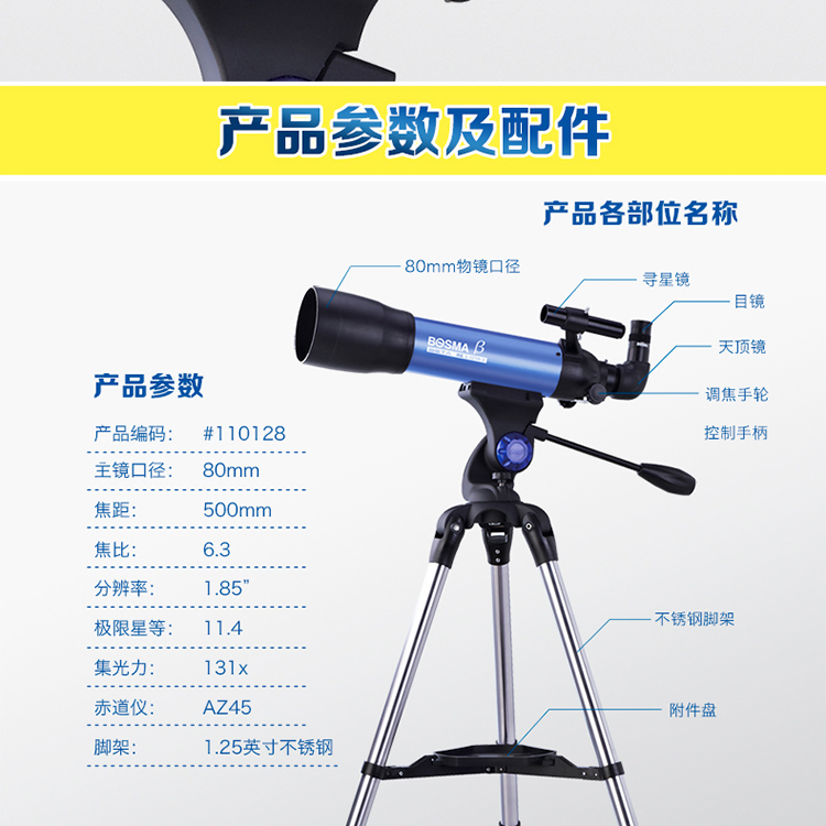 泉州德化天文望遠鏡 博冠天罡80/500Z折射式天文望遠鏡